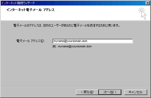 電子メールアドレス [お客様のメールアドレス] (例:myname@yourdomain.dom.)